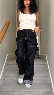 Dark wash + loose fit + deep cuffs + enormous pockets = me trying too hard. I love the *idea* of these, but I felt like a wanna-be 13-year-old in these. Couldn't wear them anywhere.