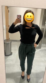 Love this top! The cutout detail adds just the right touch of skin without being too revealing. The material feels high quality, holds its shape well, and is comfortable for all-day wear. I’ve worn it out multiple times, and it’s such an easy yet elevated piece to style.