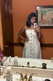 Loved this sundress! I wore it a few times while I had it. The dress has pockets and the buttons are fully functional. I rented a size 6 but I should have rented 1 size down for myself.