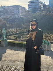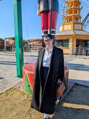 This coat goes with everything! It's a bit long for me at 5'1" but liked it at the same time because it kept my entire body warm.