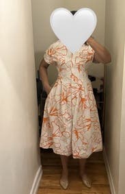Such a fun, stunning dress! The top was a little large on me, but really wasn’t noticeable. I’m 5’3” and length was perfect midi length