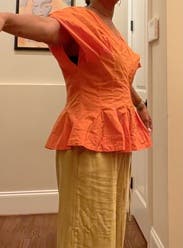This top was a show-stopper that commanded attention. It fit perfectly, and accentuated my curves in just the right places! I paired the top with the matching skirt, and received multiple compliments. I wore the combo at a women’s work conference, but could see this worn to brunch, showers, dinner, etc. Waited a long time for this combo to be available in the size, and it was worth the wait!! Hope to rent again!
