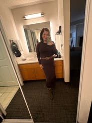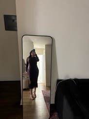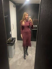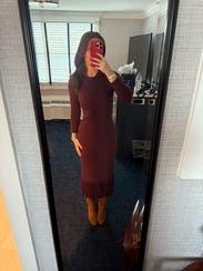 Great knit dress for dinner outing. I think it runs on the larger side, so size down if looking for a snug fit.