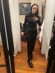 Obsessed, one of my recent favorite rentals. TTS, sexy and comfortable. Perfect for a date night. Wore out to dinner and styled with brown boots and a black bag.