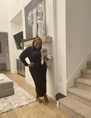 This dress is absolute fire. It's a great heavy weight, hugs the curves just right, and the neck detail transforms a nice black dress into the ultimate black dress.