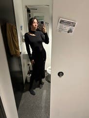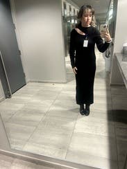 Loved this dress! It’s a great weight for cooler months, and also hangs very nicely. Comfortable, chic, and I loved the shoulder cutout.