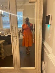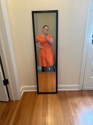 I love this dress. I rented the green one first. I sized down for the orange, and it was perfect.