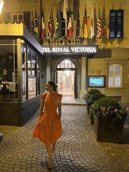 I liked this dress and wore it in Rome, where it matched the power of that amazing city. I do think it runs on the slightly larger side--I'm small chested, so the top felt especially roomy to me. The ruching in the middle helps create a nice waist, and the shoulders balanced it all out. A great dress.