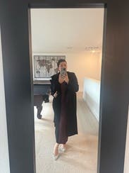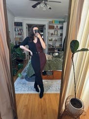 Paired this with a black sweater and black blazer for a day look for work since the back is open. Lose the blazer or sweater for a sexier evening look. It was true to size flattering on.
