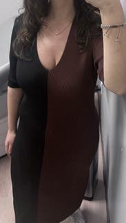 Loved the style but didn't love the opening in the back. The neckline was really low and I had to wear a cami / bra so there was no way to make this look good without a sweater. Would have loved to wear it without the sweater though.