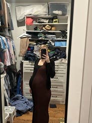 I was skeptical about this dress but it was absolutely stunning and way more flattering than I thought it would be. I paired it with the Eudon Choi Collective Leather Oversized Collar Jacket and got a ton of compliments on my look.