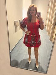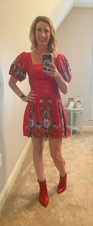 Love this red dress! If it wasn’t so expensive I would definitely buy this one. I love this brand! Runs true to size!