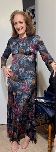 I loved so many things about this dress. The zippered neckline was great, especially for zoom calls. I could be a bit more modest. I’ve gained a bit of weight, and as a result would not wear this in public. It was too tight around my trunk. I wish it had pockets. If I lose weight, I may rent this again. Note that the fabric is very soft and not particularly thick, but very comfortable.