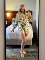 This romper was comfortable yet chic. Wore it to a day at a winery with friends. Got tons of compliments. I’d say if you’re longer in the torso, size up to give yourself a little extra length so the shorts don’t ride up.