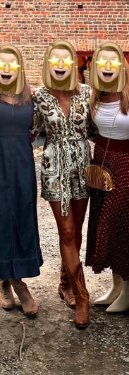 I wore this to an outdoor live music again event and again while on vacation in Europe. It was perfect for both occasions. TTS, if in between size up, I’m a 10 or a 12 and wore the L. There are a lot of buttons and things which make it slow to get on/off but the legs are wide enough you can pee without taking it off.