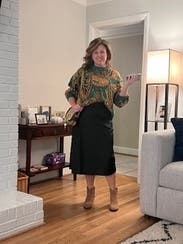 Received many compliments. I loved the print and it was easy to style. A little warm for spring. Arms were short.