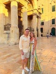If you wear a size 6-8 the medium should fit perfectly! Great beachy vibes, wine tour, cruise, summer wedding this dress is gorgeous. 5’8” and the dress is long. Fabric has some weight to it but not too much. If you’re larger chested, size up. This didn’t zip up on me, but my daughter pictured here loved it.
