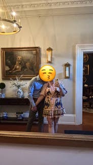 I only wore this out for some errands due to time. I didn’t feel great in it, but I really liked the beaded belt buckle and the scallop details along the hem. The neck didn’t quite flatter me as it comes all the way up. A friend liked the length on me (5’1”) at knee and the sleeves - not too poofy.