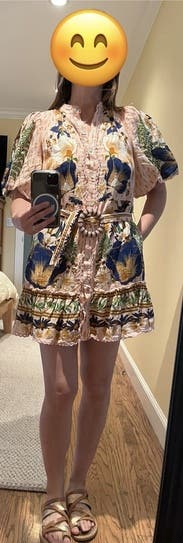 The Mini Dress is absolutely stunning and the print is vibrant and perfect for a wedding, brunch, or vacation. The only downside is that the belt buckle is really heavy, so I had to keep it in place with a safety pin or else it’ll unravel. It’s also on the shorter side, but wearing shorts underneath makes it work. Overall, a beautiful, eye-catching dress once you get it adjusted.