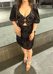 This dress was so classy and chic for a tasting in Napa during the winter! The velvet material and cutouts make this piece so unique would definitely rent again
