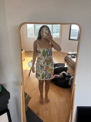 I loved this dress so much, I bought it! So fun. Easy to throw on for brunch or as a swim cover up. Versatile. Light material. Super cute! What's not to love?!