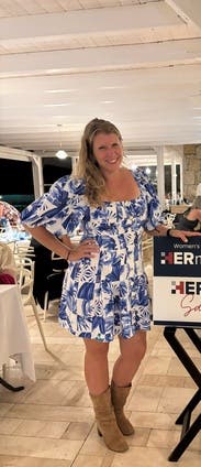 Such a fun pattern and comfortable dress. It fit great at the beginning of the night, BUT as I ate and drank more, it became tighter (of course). Would have bought a size up for sure.