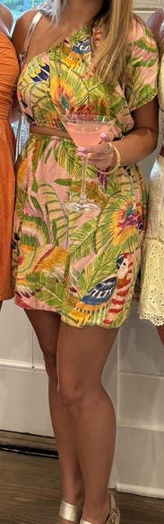 Wore to a “Sippin Safari” event at the zoo - prefect choice. Loved the print and the style. As mentioned by others, the elastic IS tight! Didn’t bother me too much though. Farm Rio rarely disappoints.