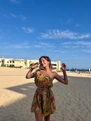 I had been eyeing this on Farm Rio but realized I wouldn't wear it enough for the price - it's very vacation vibes. This one is what inspired my entire RTR vacation haul. The elastic around the waist was tight, leaving some marks so I just made sure the fabric was covering it. Felt very easy & free to walk the beach, hike, and still feel pretty! It was perfect for my nails, rings, and fanny pack. Loved it!!!