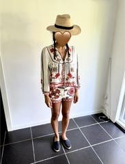 Have worn and rented lots of Farm Rio and love their stuff! Sized up for length. Beautiful detailing, super easy to wear, will have to try the matching set with the shorts when it's warmer in the future.