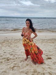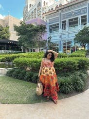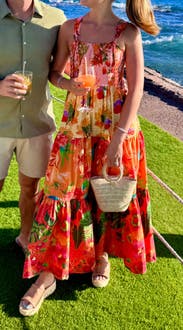 I had to wear this dress on my trip to Rio! Unfortunately just the large was available but I made it work. The dress is so beautiful and ideal for hot and humid locations. I love the adjustable straps and I found the length perfect, but I’m on the tall side. Might be too long for those under 5’8”.