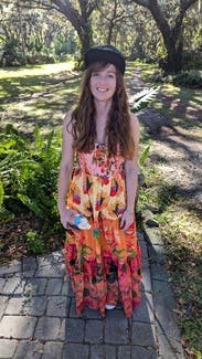 This dress is fantastic. It’s so pretty and I got so many compliments on the colors. It does run a bit small so the chest was tight on me but once it was on (it zips so be careful) it was actually comfortable and I wore it for a 10 hour day of eating and drinking