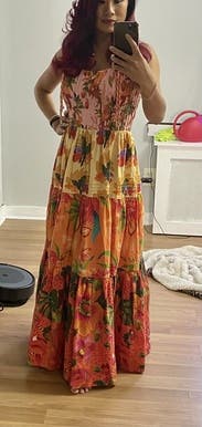 loved this dress! fit perfectly, and even though it was a maxi it gave you shape! this dress has zero stretch, the pattern is so beautiful!
