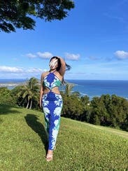 Love the colors , the fabric is thick , but comfortable, so fabulous for Hawaii, xsmall Was perfect 💙🤍