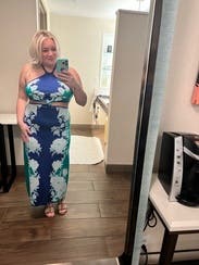 The dress is high quality and vibrant in color. I wish it had fit me! It would have been perfect for my Cabo vacation. I am usually a size 12/14 but I’m 6 months pregnant with a jump and sized up to a 16. Unfortunately, the top was too big (38b) I couldn’t make it work. The bottom was comfortable and stretchy.