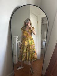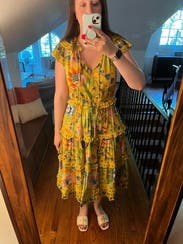Loved this dress for vacation. Fits TTS and has great colors. Cute accents with the beads too. Would definitely rent again.