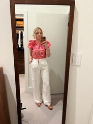 loved this top! fit tts and so cute with white jeans and a sneaker