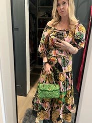Fun and playful print! Loved being able to adjust the sleeves to off the shoulder for weekends or short sleeve for work. Very comfortable and a great tennis shoe dress.