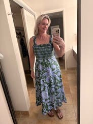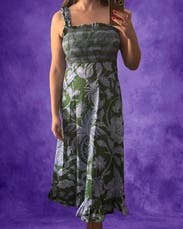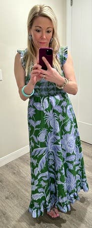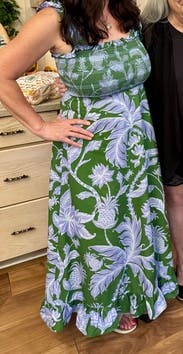 Look, I’m a big Farm Rio fan, and I enjoyed this dress a few times for running errands or hanging with friends, but it’s not a showstopper. No pockets, the skirt is not cut with lots of fabric like some of their skirts—it’s a dress that doesn’t “feel” expensive. It just feels average and it looks ok on. Also, the shoulder straps have frilly fabric that isn’t falling right after all the washes and shipping. It’s fine for a cute beach cover up or low key day out. Can’t be dressed up and definitely doesn’t feel luxurious like other Farm Rio