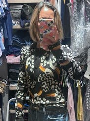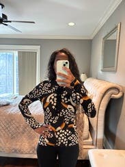 Loved this so I bought it. Arrived NWT. So cute and a perfect weight of a sweater- thin but sweatery and I know I won’t sweat. Looking forward to accessorizing with different tips including a white blouse - will look great with the split sleeve design.