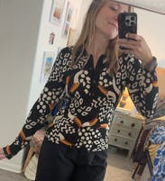 So many compliments on this one. The details were perfect - the toucans are great. Split sleeves at the wrist and buttons at the top. My husband wants me to buy it. Big win for Farm Rio.