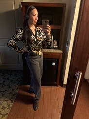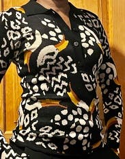 Hot animal print! Versatile colors to pair with suede skirt or black dress pants.
