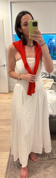 So this dress is giving major bridal vibes… it’s almost to my ankles. But I love it anyways. It’s very well structured and made from a medium weight linen. I will definitely be wearing this one throughout the summer. Can dress up or down, has pockets!