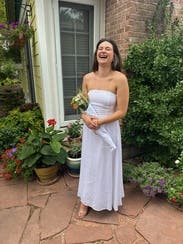 This was a stunning dress! So light and airy, it was perfect for my September bridal shower. Wish I had a reason to buy it.