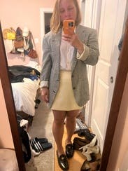 This brand runs small so size up. Wore it to an Easter brunch with another RTR tweed jacket. Paired with a chain belt