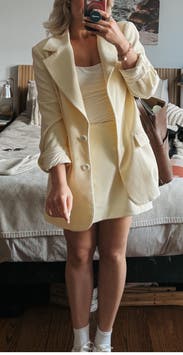 Obsessed with the color and how it looks with the matching oversized blazer! I rented it to be able to wear to work and it ended up being too short on me but I have very long legs. However most mini skirts/skorts are too short on me to even wear so at least I got to wear this outside work.