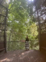 Wore this all day to a farmer market, lunch and shopping. It was super comfy but it was a little long for me. I crunched the waist a little up so I would not trip. And the back showed my bra straps a little. Other than that it was an easy dress to wear.