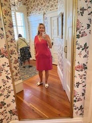 This dress is a great pink, but it just isn't flattering for pear shapes.