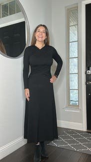 This dress felt so good the wear. Soft and stylish. I liked the higher neck with the criss cross detail, which had the same detail at the waist. The center back hemline has a small split that was another nice detail. I enjoyed it so much I wore it twice during my rental.