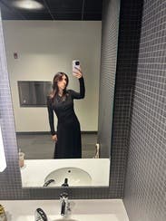 Loved this dress, comes across as very dressy but the knit fabric tones it down. It fit perfectly and is very flattering. I love the slit in the back though it was higher than I thought when I bent over a couple times... It's modest in the bust area which is a nice change from most dresses cut like this to make it work appropriate. Definitely a day to night dress. I've worn it three times and will rent again.