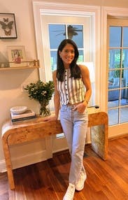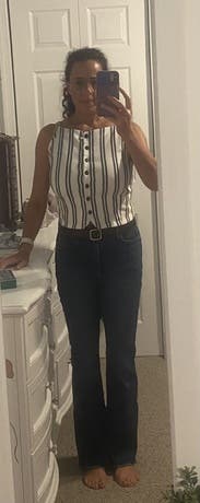 Dressed it up with some high-waste slacks and down with some denim. Compliments on both!